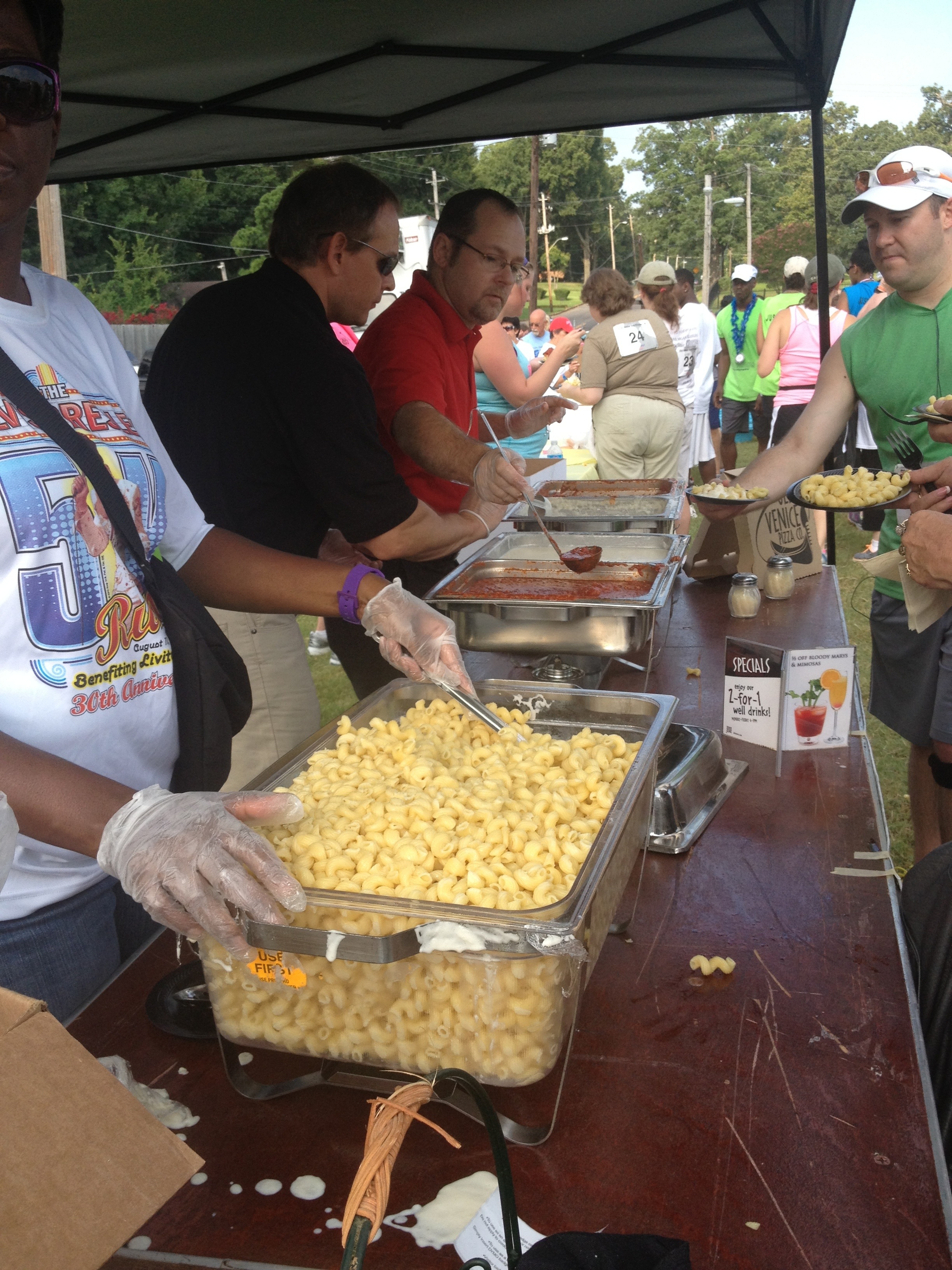 The after party was so much fun, too. Post-race food was Krispy Kreme donuts, bananas, bags of white cheddar pop corn, pasta with meat sauce and alfredo sauce, smoothies, bagels, water, and freely flowing beer.
